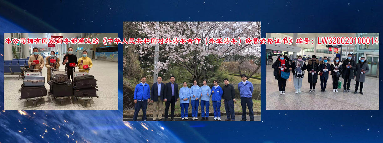 是從事對(duì)外勞務(wù)合作的專業(yè)性公司,本公司擁有國(guó)家商務(wù)部頒發(fā)的《中華人民共和國(guó)對(duì)外勞務(wù)合作(外派勞務(wù))經(jīng)營(yíng)資格證書(shū)》編號(hào):LW320020100014。從一九九五年開(kāi)展勞務(wù)合作以來(lái),積極開(kāi)拓進(jìn)取,先后向日本、加拿大、新加坡、韓國(guó)等國(guó)家派遣勞務(wù)人員近1萬(wàn)5千余人。勞務(wù)合作行業(yè)主要有服裝(車(chē)工、裁剪、整燙、制板、維修、車(chē)間管理)、針織業(yè)(織布、漂染、針織、橫機(jī)、套口羊毛衫工)、建筑工程(技術(shù)人員、瓦工、鋼筋工、拌灰工、木工、油漆工、電工、鋁合金工、水暖工等)、機(jī)械工(銑床、車(chē)床、沖床、鉆床、鑄造等)電焊工(壓力容器、亞弧焊、建筑設(shè)備安裝、船舶、管道工)、遠(yuǎn)洋捕撈(職務(wù)船員、普通漁工、水手),高級(jí)廚師(川菜、粵菜、京菜、淮揚(yáng)菜)、電子裝配、園藝、蔬菜種植、桑蠶飼養(yǎng)、海、淡水養(yǎng)殖、護(hù)士、翻譯(英語(yǔ)、日語(yǔ)、韓國(guó))等,日本辦事處設(shè)在日本東京、廣島主要負(fù)責(zé)管理和服務(wù)日本研修生及貿(mào)易方面的聯(lián)絡(luò)工作,國(guó)外辦事處和中國(guó)公司現(xiàn)有工作人員25人,專職勞務(wù)工作人員10人,從事勞務(wù)行業(yè)均10年以上,翻譯、培訓(xùn)教師5人,外教2人,會(huì)計(jì)3人,業(yè)務(wù)人員5人。